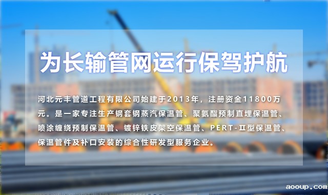 kaiyun官方体育登录入口始建于2013年,注册资金11800万元。是一家专注生产钢套钢蒸汽保温管、聚氨酯预制直埋保温管、喷涂缠绕预制保温管、镀锌铁皮kaiyun体育平台、PERT-Ⅱ型保温管、保温管件及补口安装的综合性研发型服务企业。